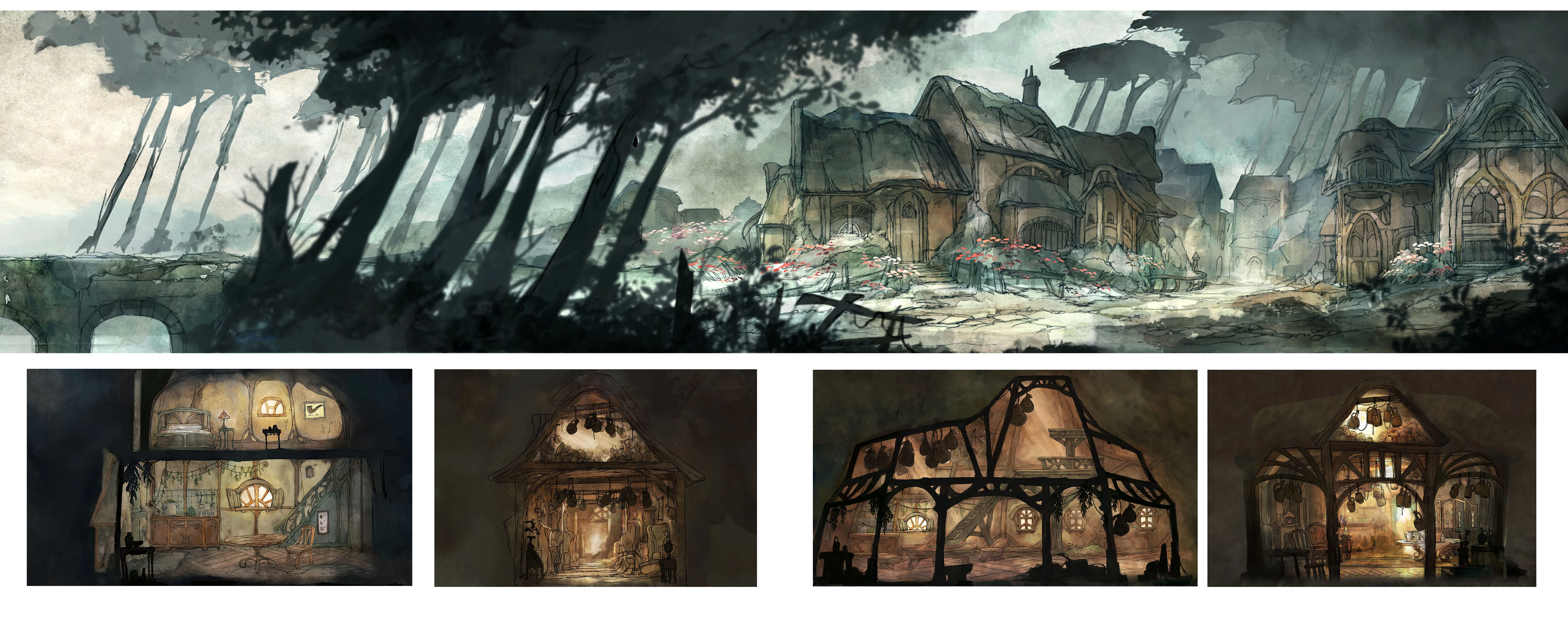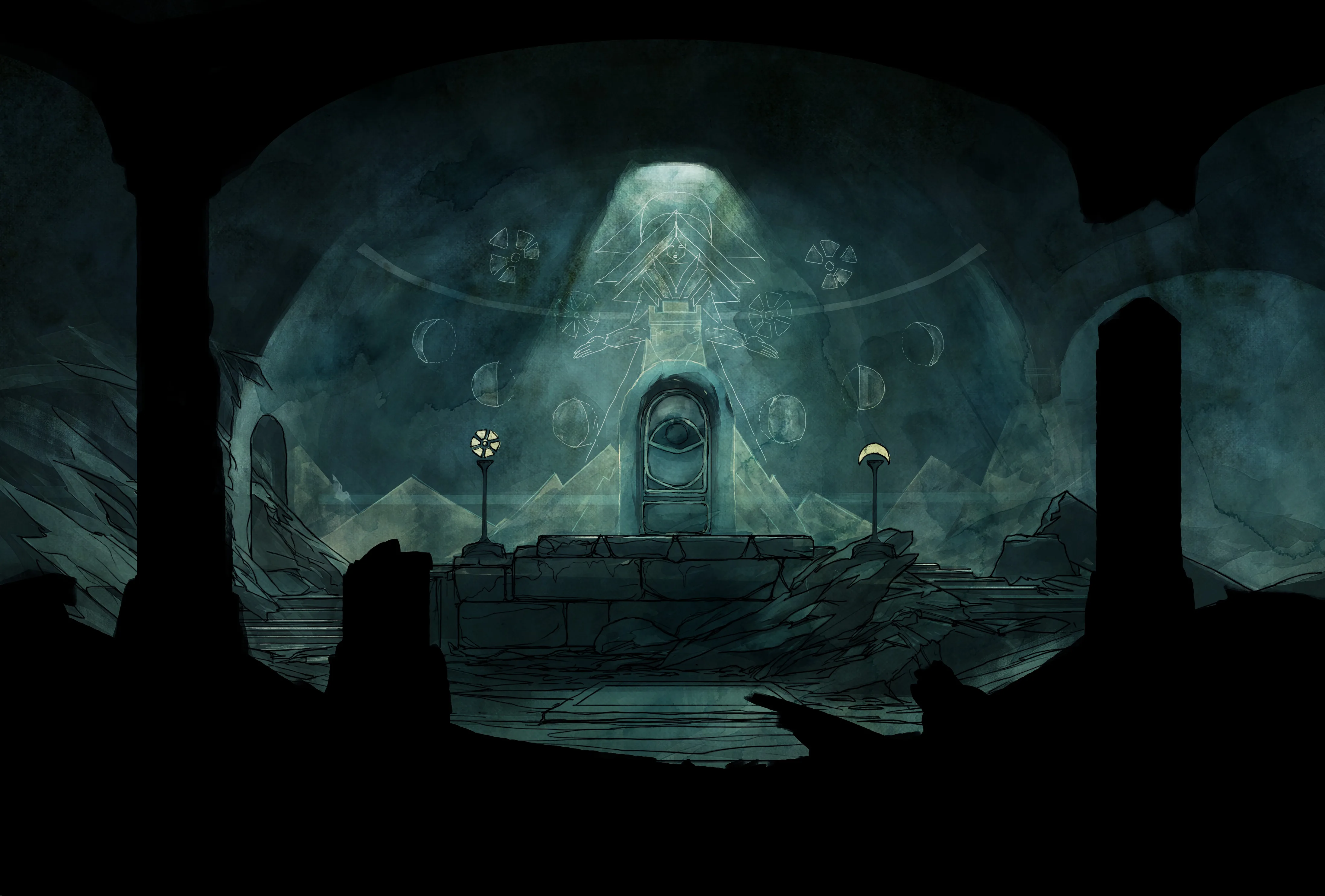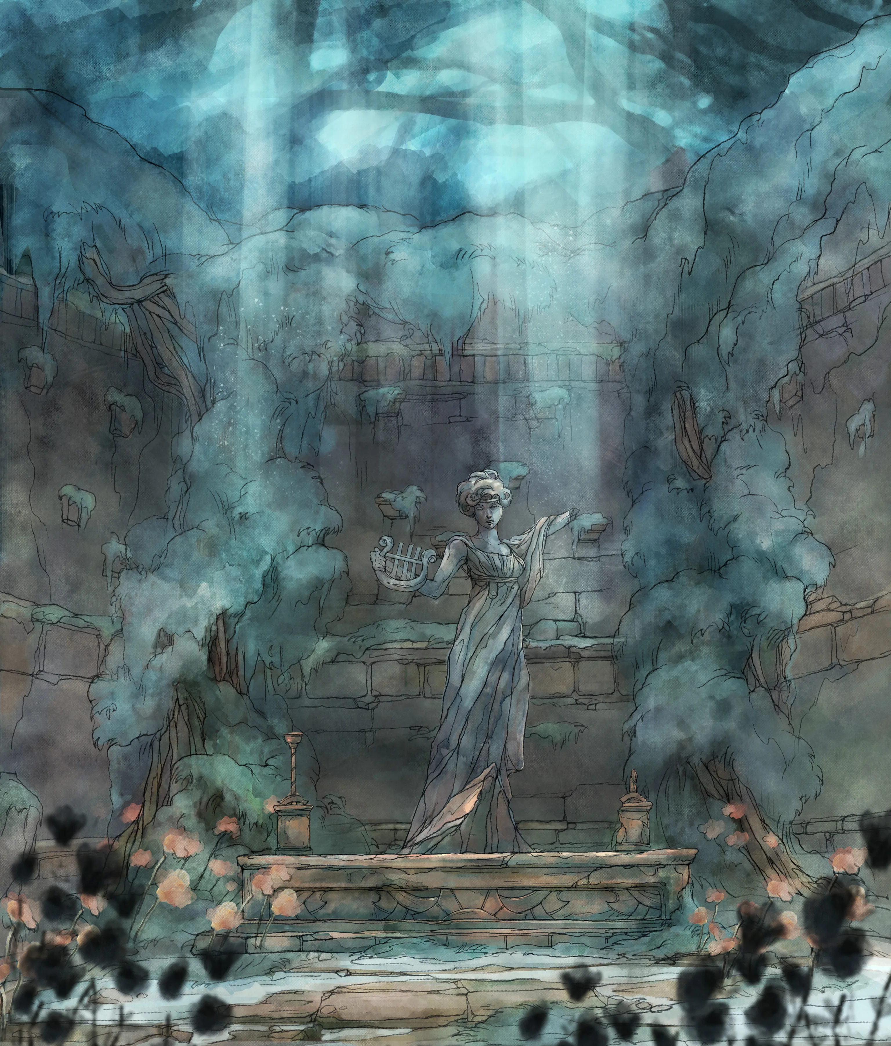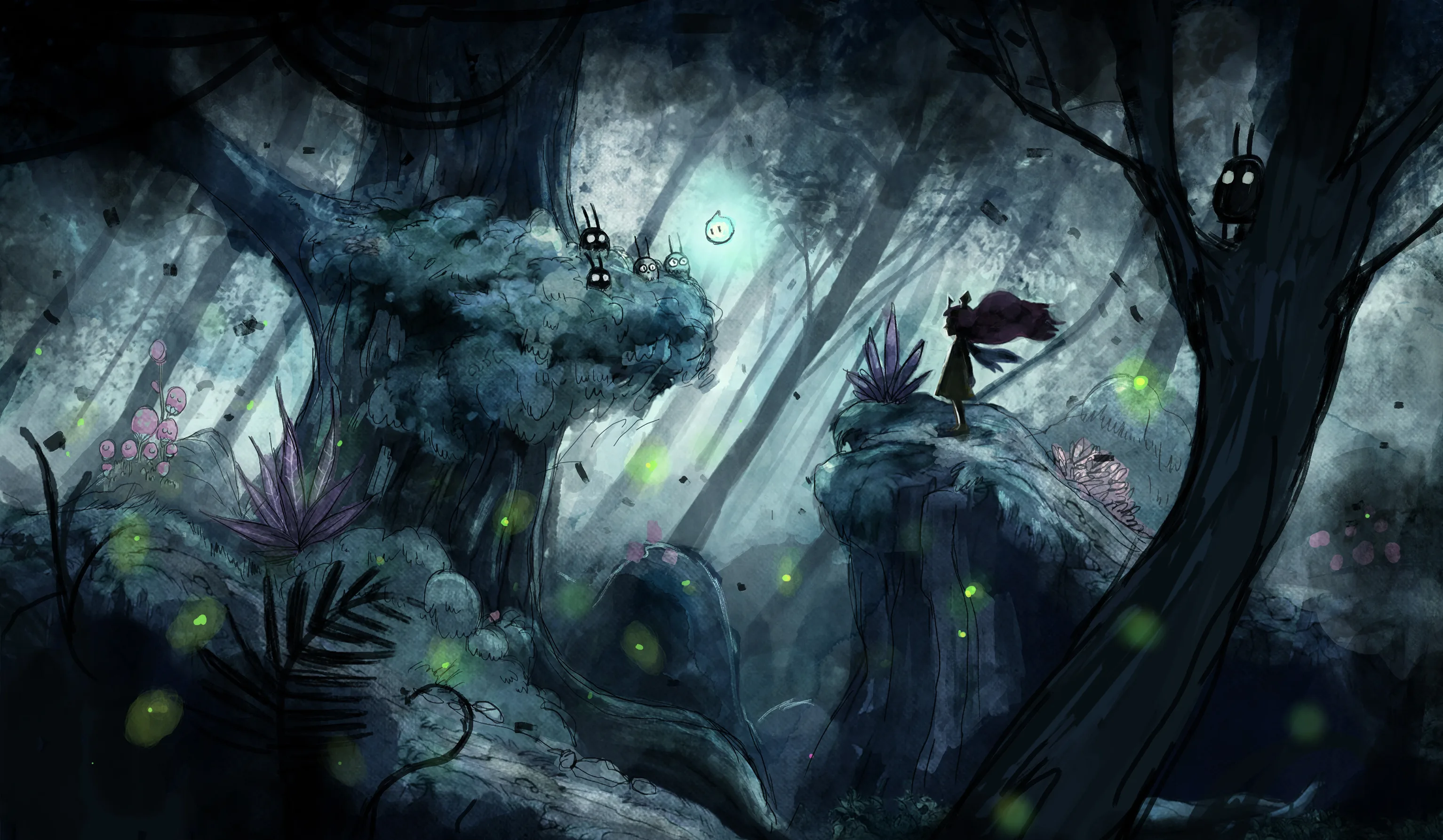 For Child of Light, my aim was to create a world that feels like being awake in an underwater dream. We really put forward the watercolor effect to make every environment float as if the entire world were breathing beneath the surface. The intention was to merge the delicacy of illustrated fairy tales with a dreamlike, melancholic atmosphere suspended in time.
