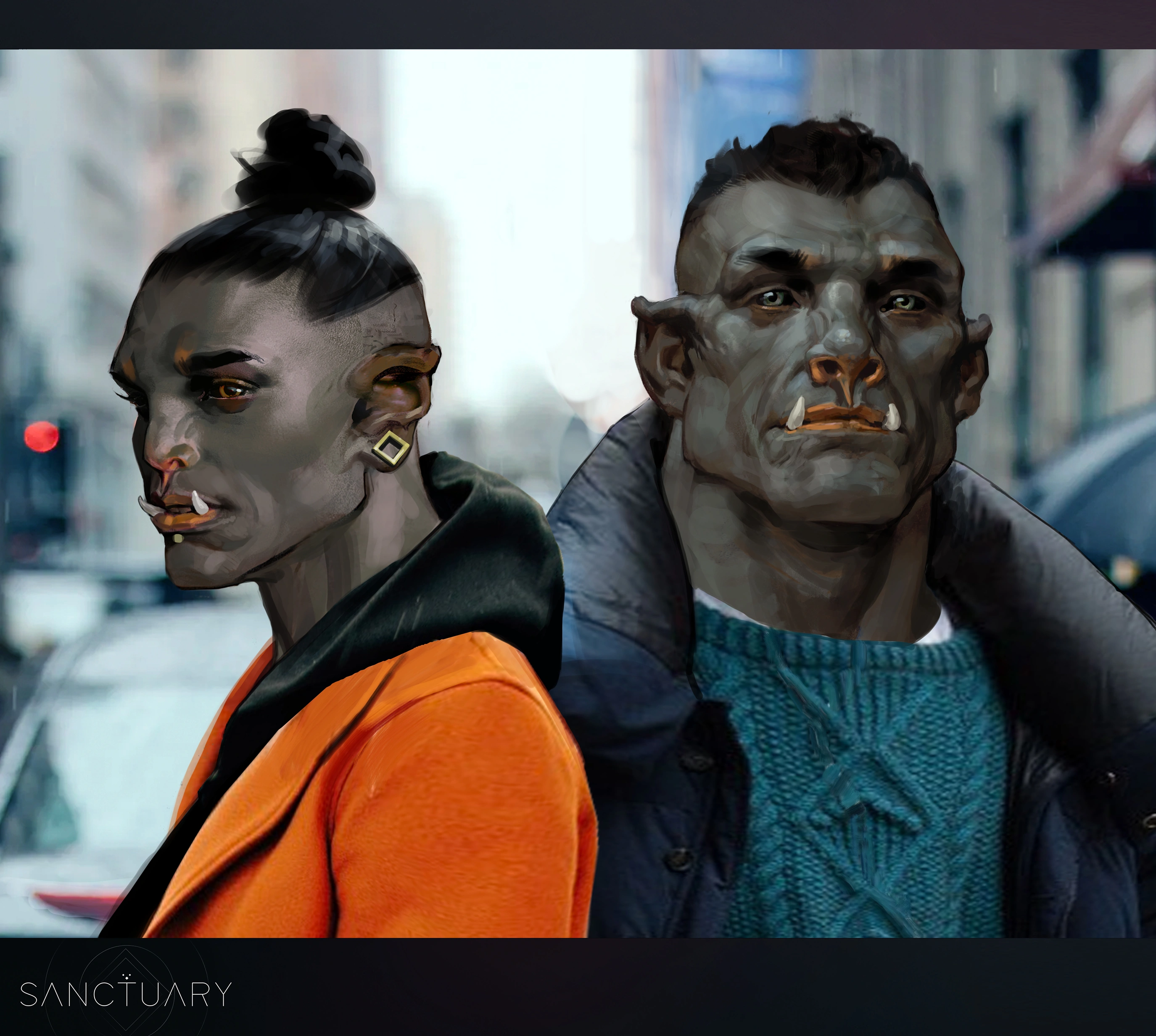 Sanctuary was a game about two worlds colliding , a fantasy realm filled with orcs, elves, and centaurs merging with our modern world. This clash created a unique mix of genres and situations.